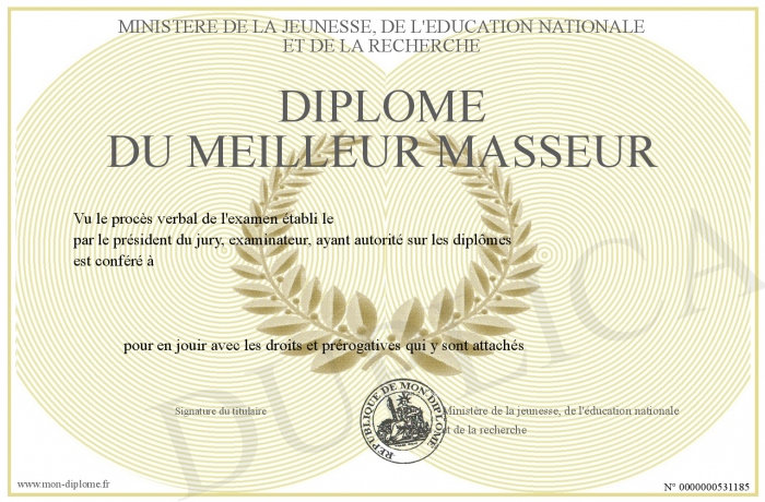 Envoyez par email votre Diplôme du meilleur masseur personalisé