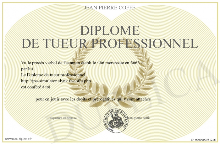 Envoyez par email votre Diplôme de tueur professionnel personalisé