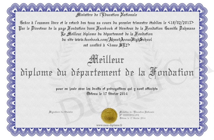 Envoyez par email votre Meilleur diplôme du département de la Fondation personalisé