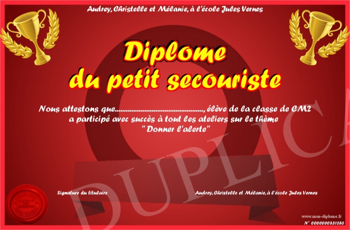 Envoyez par email votre Diplôme du petit secouriste personalisé