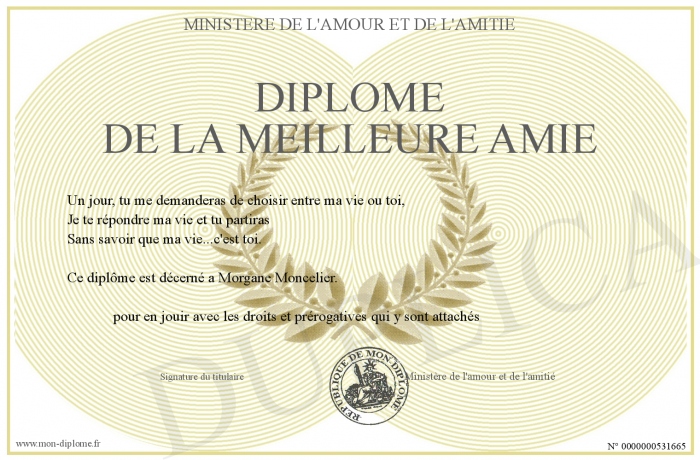 Envoyez par email votre Diplôme de la meilleure amie personalisé