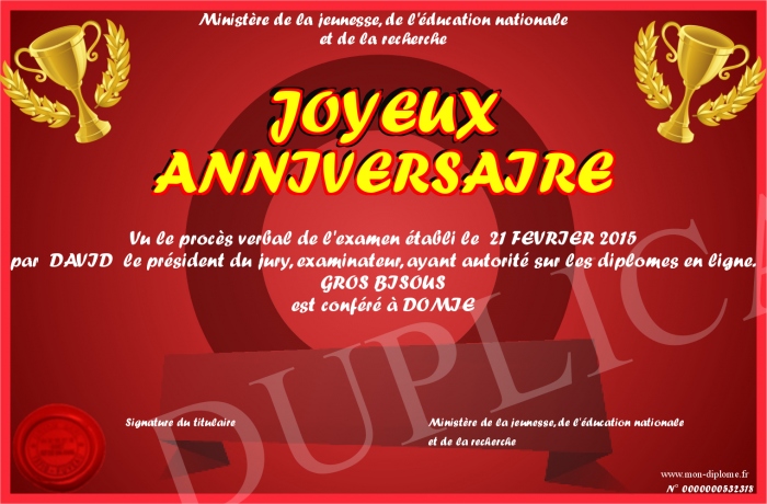 Envoyez par email votre JOYEUX ANNIVERSAIRE personalisé