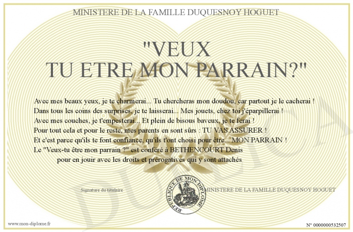 Envoyez par email votre -VEUX TU ETRE MON PARRAIN?- personalisé