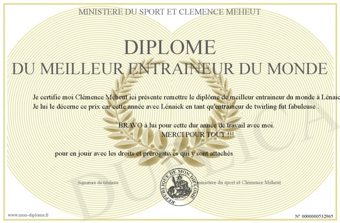 Envoyez par email votre Diplôme du meilleur entraineur du monde personalisé