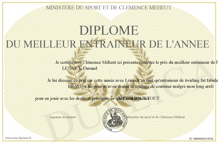 Envoyez par email votre Diplôme du meilleur entraineur de l'année personalisé