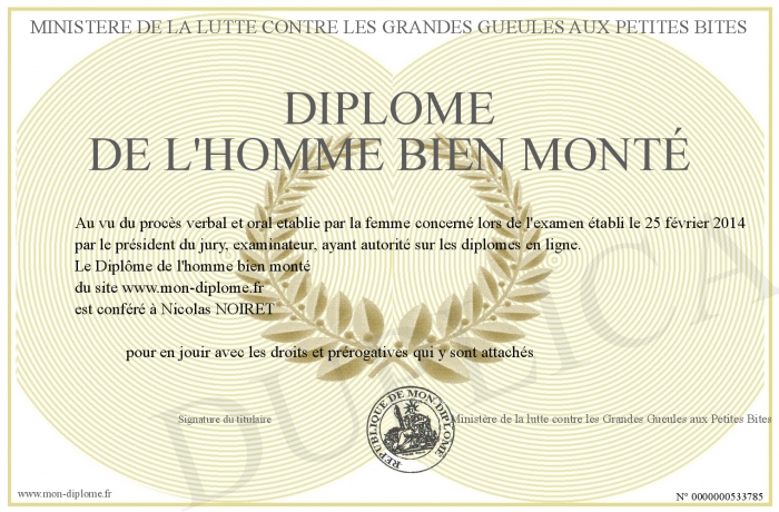 Envoyez par email votre Diplôme de l'homme bien montÉ personalisé