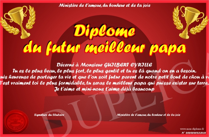 Envoyez par email votre Diplome du futur meilleur papa personalisé