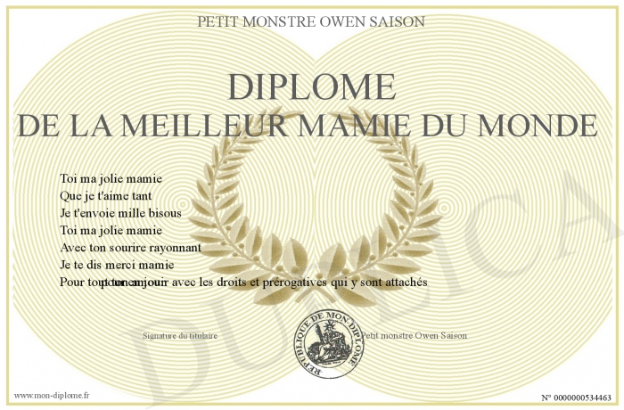 Envoyez par email votre diplôme de la meilleur mamie du monde personalisé