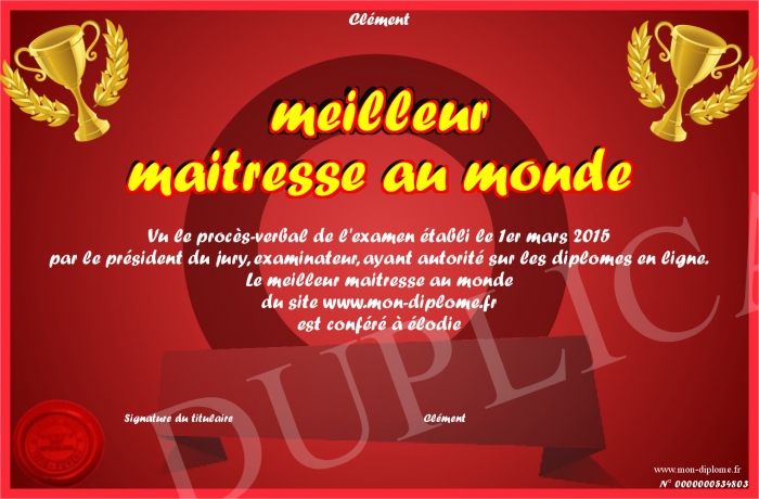 Envoyez par email votre meilleur maitresse au monde personalisé