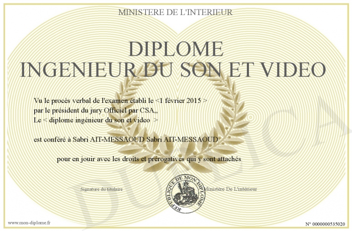 Envoyez par email votre diplome ingénieur du son et video personalisé
