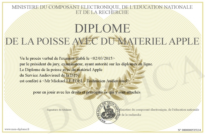 Envoyez par email votre Diplôme de la poisse avec du matériel Apple personalisé