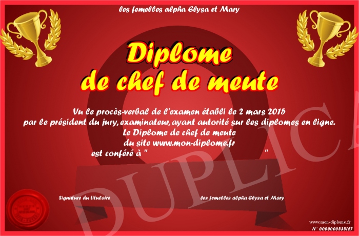 Envoyez par email votre Diplôme de chef de meute personalisé