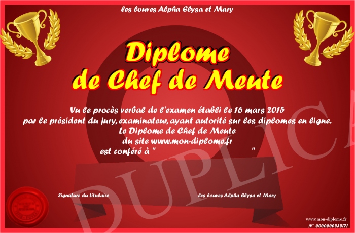 Envoyez par email votre Diplôme de Chef de Meute personalisé