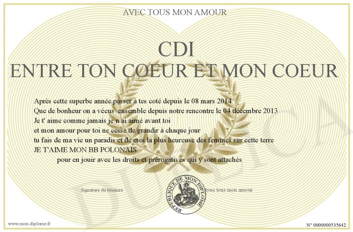 Envoyez par email votre CDI entre ton coeur et mon coeur personalisé