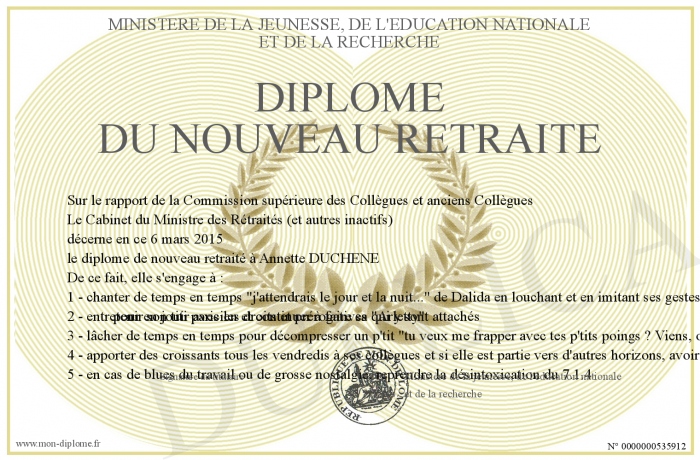 Envoyez par email votre Diplôme du nouveau retraité personalisé