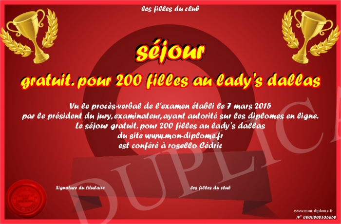 Envoyez par email votre séjour gratuit. pour 200 filles au lady's dallas personalisé