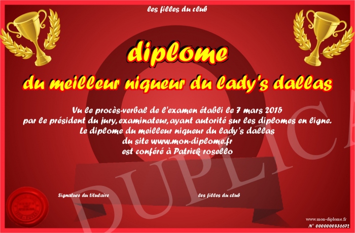 Envoyez par email votre diplôme du meilleur niqueur du lady's dallas personalisé