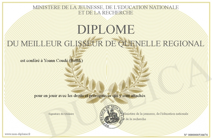 Envoyez par email votre Diplôme du meilleur glisseur de quenelle régional personalisé