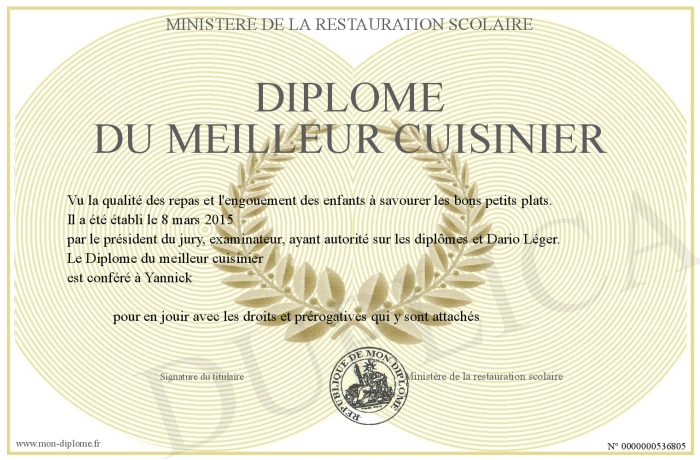 Envoyez par email votre Diplôme du meilleur cuisinier personalisé