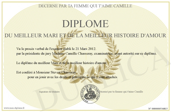 envoyé par le Décerné par ta femme qui t'aime Camille !