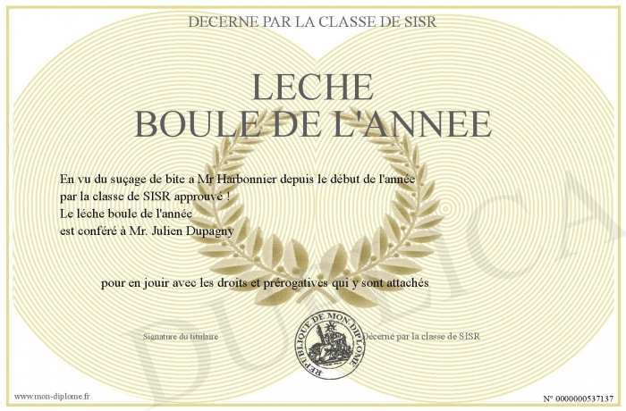 Envoyez par email votre Léche boule de l'Année personalisé