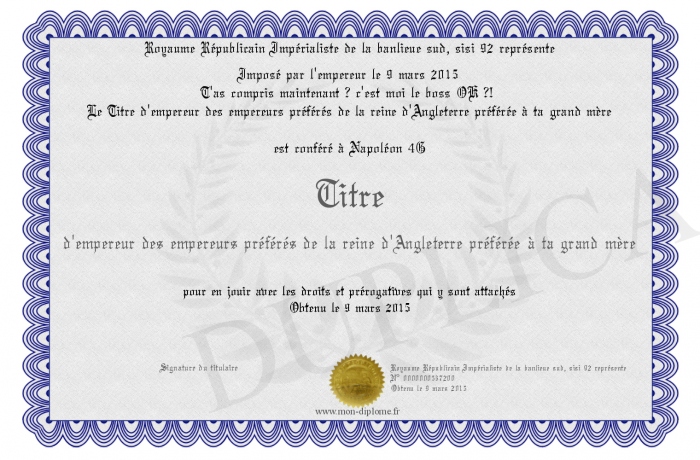 envoyé par le Royaume Républicain Impérialiste de la banlieue sud, sisi 92 représente !