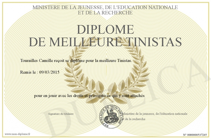 Envoyez par email votre Diplome de meilleure tinistas personalisé
