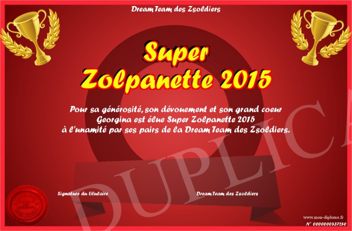 Envoyez par email votre Super Zolpanette 2015 personalisé