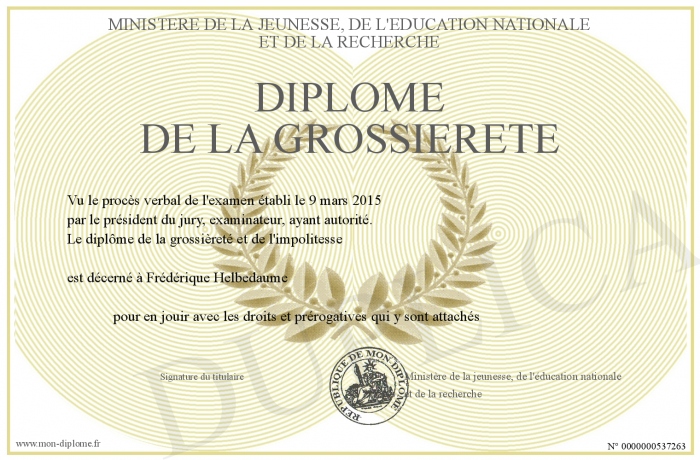 Envoyez par email votre Diplôme de la grossièreté personalisé