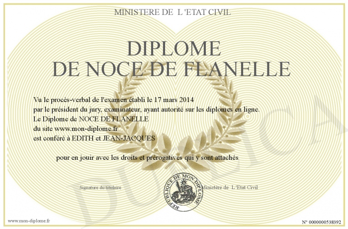 Envoyez par email votre Diplôme de NOCE DE FLANELLE personalisé