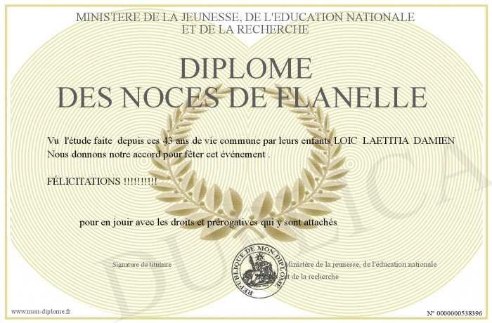 Envoyez par email votre Diplôme DES NOCES DE FLANELLE personalisé
