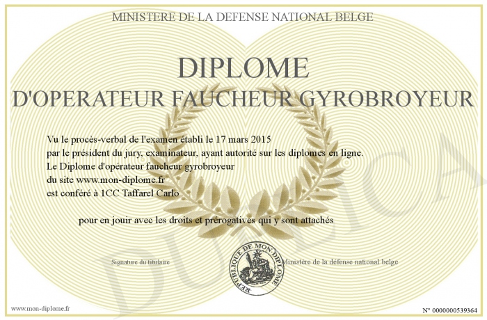 Envoyez par email votre Diplôme d'opérateur faucheur gyrobroyeur personalisé