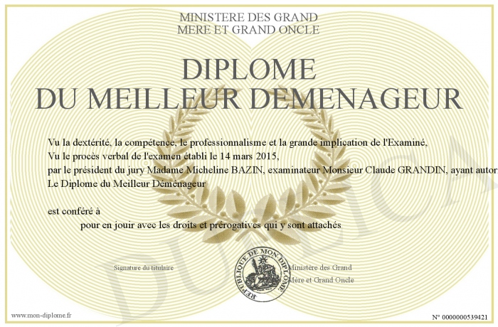 Envoyez par email votre Diplôme du Meilleur Déménageur personalisé