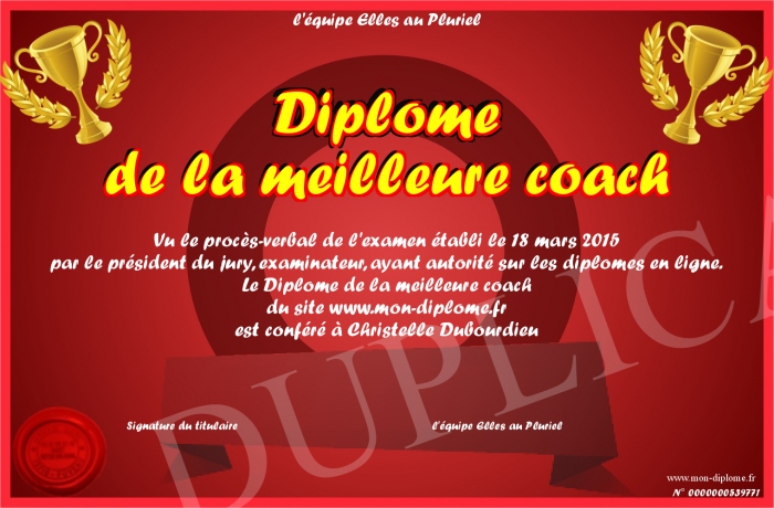 Envoyez par email votre Diplôme de la meilleure coach personalisé