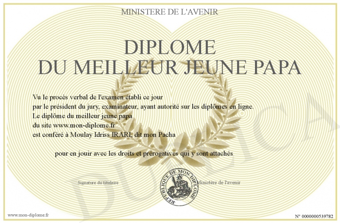 Envoyez par email votre Diplôme du meilleur jeune papa personalisé