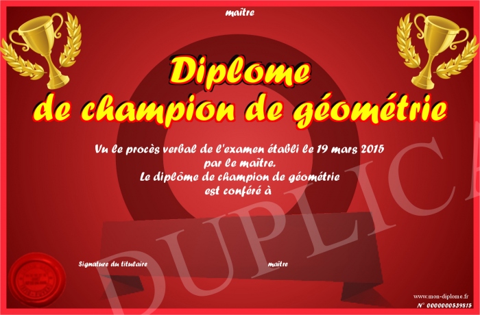 Envoyez par email votre Diplôme de champion de géométrie personalisé