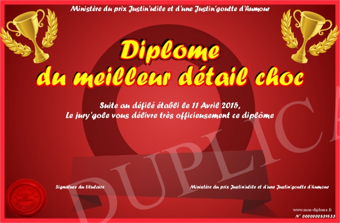 Envoyez par email votre Diplôme du meilleur détail choc personalisé
