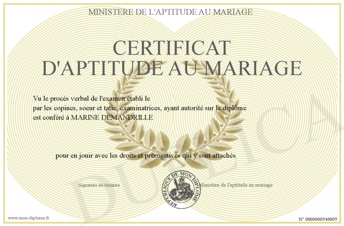 Envoyez par email votre Certificat d'aptitude au mariage personalisé