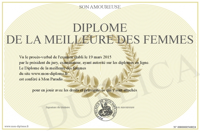 Envoyez par email votre Diplôme de la meilleure des femmes personalisé
