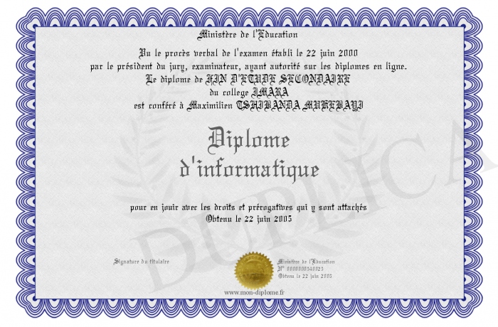 Envoyez par email votre Diplome d'informatique personalisé