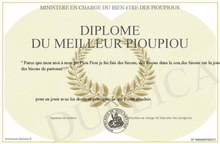 Envoyez par email votre Diplôme du Meilleur Pioupiou personalisé