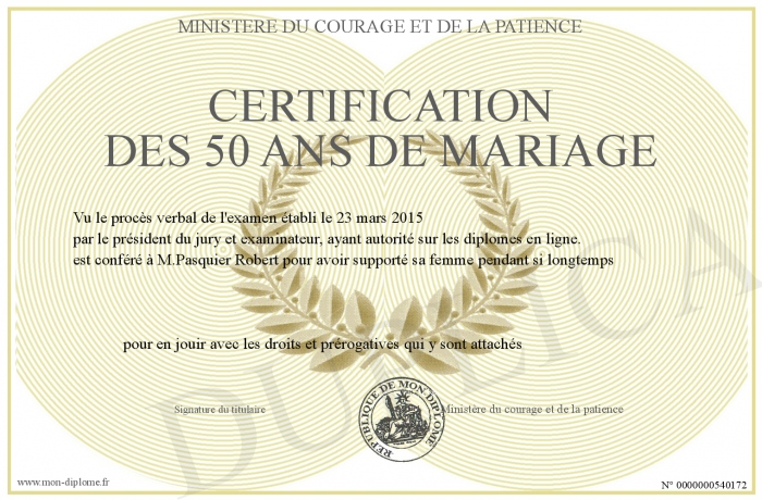 Envoyez par email votre Certification des 50 ans de mariage personalisé
