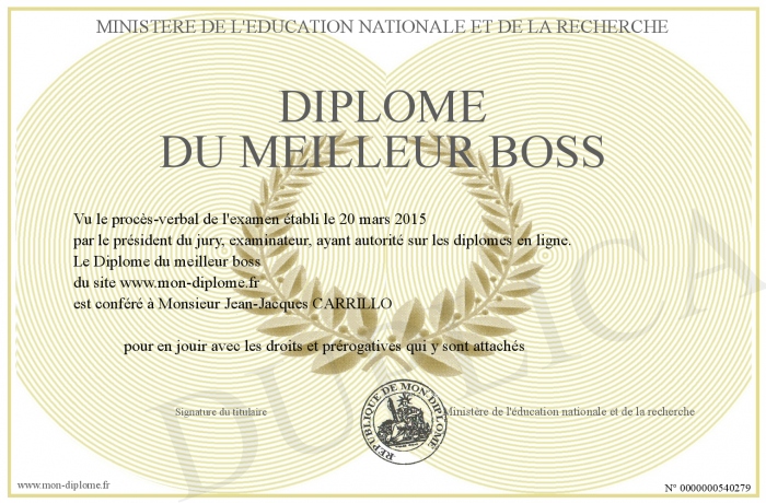 Envoyez par email votre Diplôme du meilleur boss personalisé