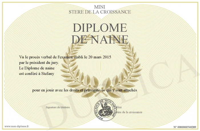 Envoyez par email votre Diplôme de naine personalisé