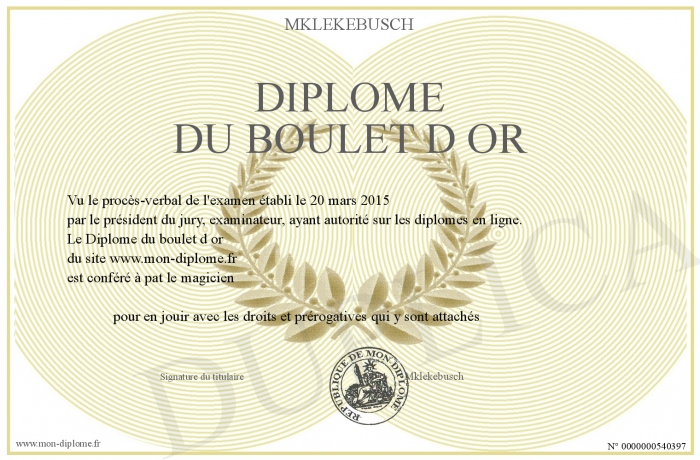 Envoyez par email votre Diplôme du boulet d or personalisé
