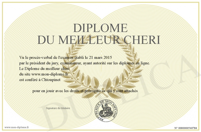 Envoyez par email votre Diplôme du meilleur cheri personalisé