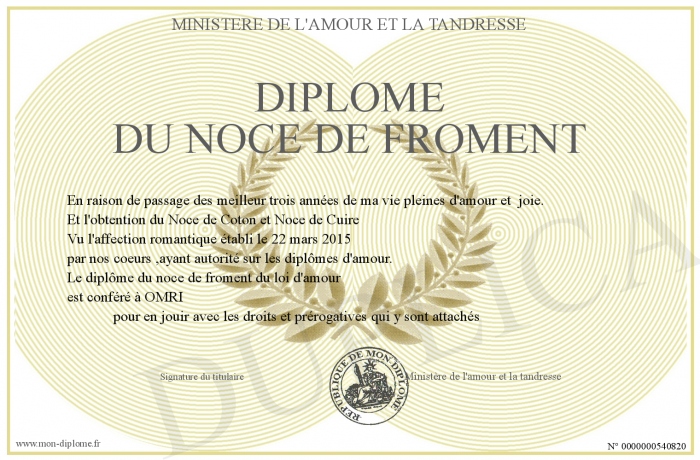 Envoyez par email votre Diplôme du noce de Froment personalisé
