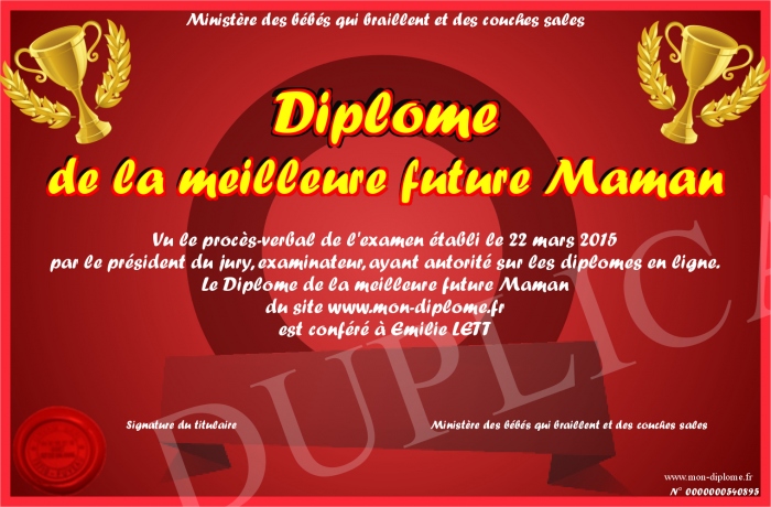 Envoyez par email votre Diplôme de la meilleure future Maman personalisé