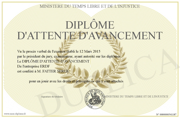 Envoyez par email votre DIPLÔME D'ATTENTE D'AVANCEMENT personalisé