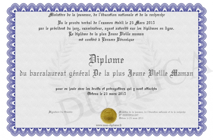 • Diplôme du baccalaureat général De la plus Jeune Vieille Maman